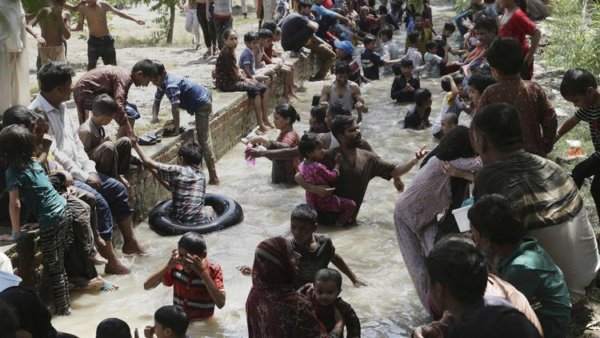 2017.06.04. – pakisztáni családok hűtik magukat az 53,5 fokban. Fotó: K.M. Chaudary / AP